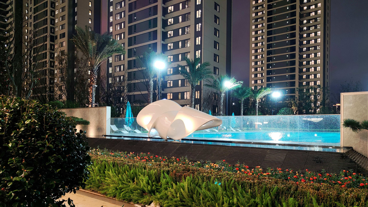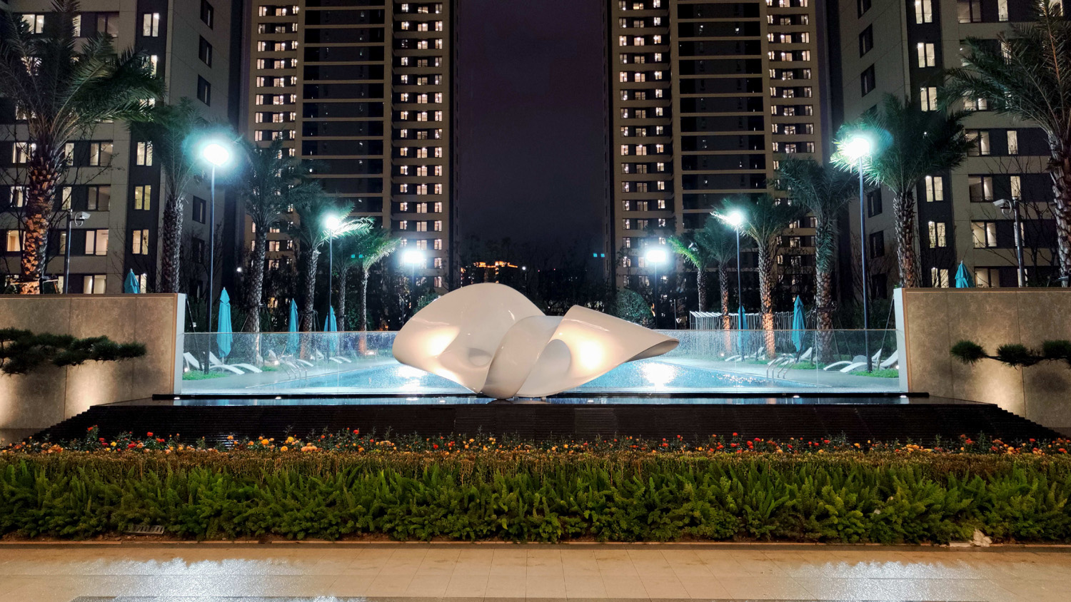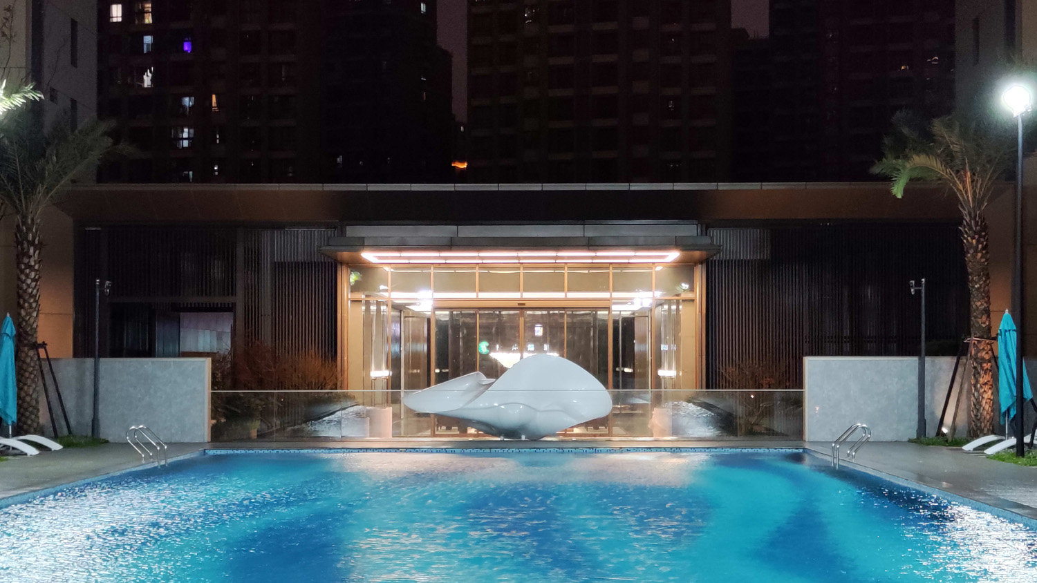 海螺具有傾聽的意思,海螺放在耳邊能聽到里面有聲音,同時借鑒玉石溫潤靈氣的色彩特征,與建筑風格產生聯系。