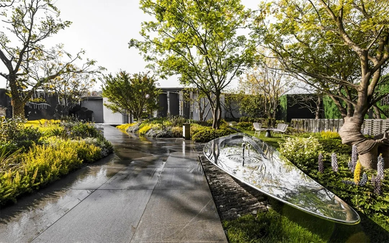 景觀的鏡面水景更像是一座展臺,倒映著藝術館里的生活畫卷。