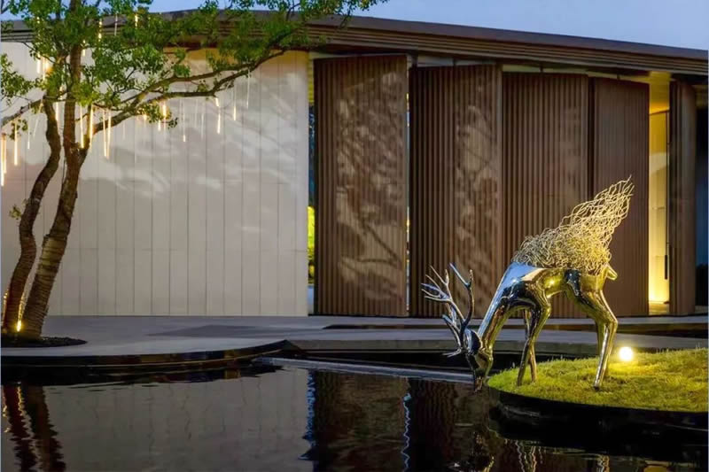 在后場,飲水鹿為空間增加了靜謐感,在城市中打造出與自然融合的精致作品。船兒穿梭的剪影,停泊的形態,與場地的地域文化相呼應。